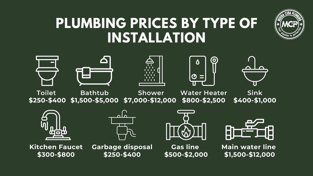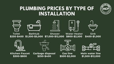 The cost of installing various plumbing systems differs depending on the project due to variations in labor time, complexity, and material expenses. Certain projects are simpler than others, and external factors can influence the overall price range. Below are the average costs for some of the most common plumbing installations.